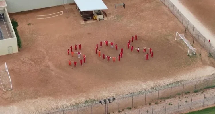 Las imágenes, que fueron tomadas sobre el centro de detención Bluebonnet del Servicio de Inmigración y Control de Aduanas en Anson, Texas, se produjeron apenas diez días después de que docenas de ciudadanos venezolanos detenidos en las instalaciones fueran acusados ??formalmente de ser miembros de la violenta pandilla carcelaria Tren de Aragua y probablemente enfrentarán la deportación, según Reuters.