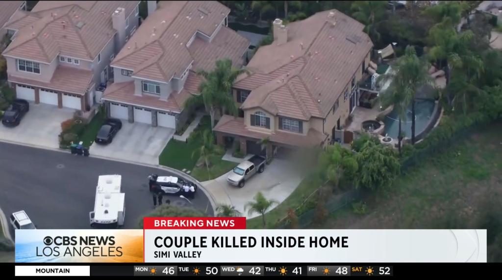 La pareja asesinada, identificada como el Dr. Eric Cordes y su esposa Vicki, fueron encontrados con heridas de bala en el garaje de su casa en Simi Valley y luego declarados muertos en el hospital, dijo la policía.