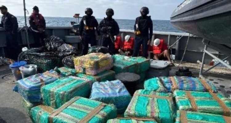 Los militares y la Armada de Ecuador ejecutaron una operación coordinada con la guardia costera de Estados Unidos, que permitió la aprehensión en altamar de siete ecuatorianos y la incautación de 4,6 toneladas de droga, que, aparentemente, tenía como destino Norteamérica, informó este viernes el Ministerio de Defensa.