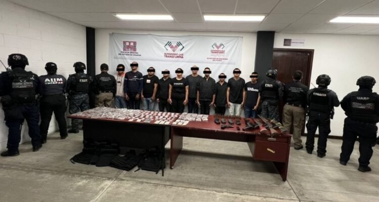 Agentes de seguridad detuvieron este domingo a doce integrantes del Cartel Jalisco Nueva Generación (CJNG) en Chiapas, en el sur de México, y les aseguraron armamento, vehículos y equipo táctico.