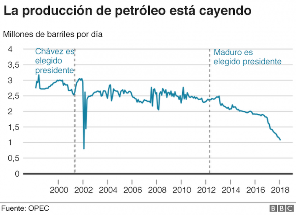 Venezuela es conocida por poseer una de las reservas de petróleo más grandes del mundo, pero al ser casi su única exportación, la caída en la producción del líquido está golpeando fuertemente la economía del país.
