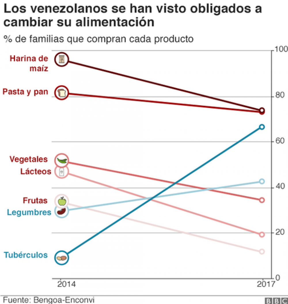 Los venezolanos han visto cómo en los últimos meses escasean los productos alimenticios más básicos. Alimentos como la carne de res o el pollo se han convertido en artículos de lujo. La crisis ha provocado una caída notable de las importaciones en un país extremadamente dependiente del exterior que ha visto además hundirse la producción nacional en todos los rubros.