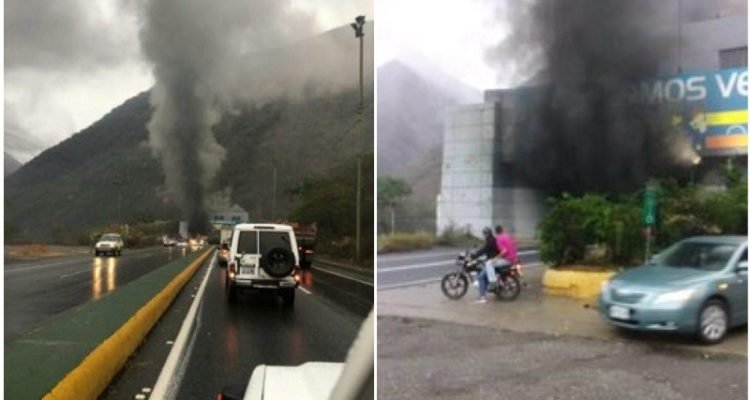 Este miércoles 24 de abril se reportó el incendio de una unidad de transporte de la Universidad Marítima dentro de Boquerón 1, en la autopista Caracas – La Guaira.