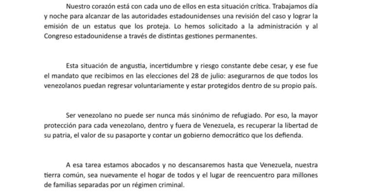 María Corina Machado con los Venezolanos del TPS NotiExpressColor 09/11/2025 Nacionales Sobre la protección a los migrantes venezolanos. Venezuela será nuestro lugar seguro muy pronto. Loading...