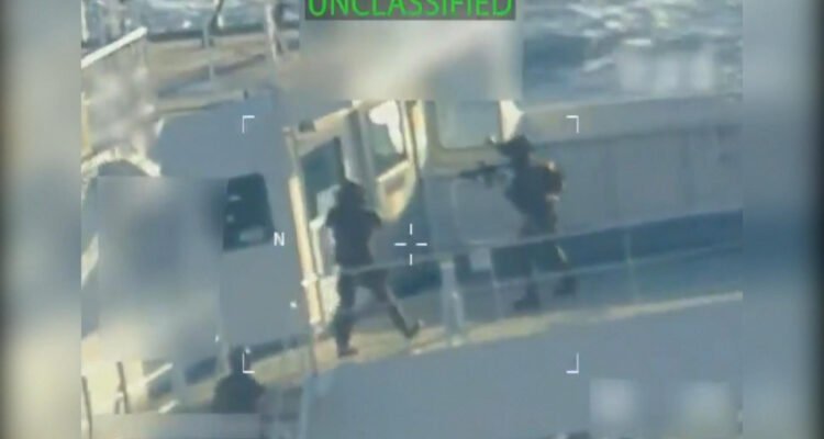 El buque fue interceptado en un gran operativo, con efectivos estadounidenses fuertemente armados abordando la embarcación desde helicópteros y lanchas rápidas.