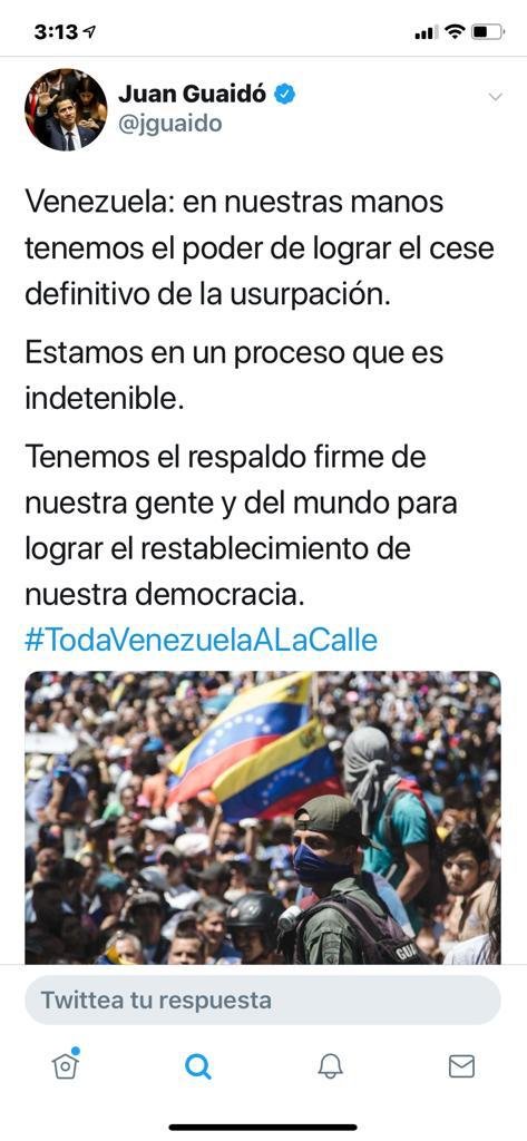 @jguaido Venezuela en nuestras manos tenemos el poder de lograr el cese definitivo de la usurpación WebMaster 01/05/2019 Sucesos, Titulares, Venezuela Loading...