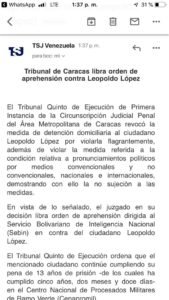 Tribunal de Caracas libra orden de aprehensión contra Leopoldo López WebMaster 06/05/2019 Sucesos, Titulares, Venezuela Loading...