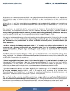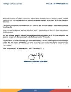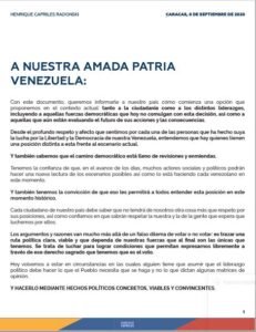 Henrique Capriles Radonski: A Nuestra Amada Patria Venezuela @NotiExpresColo Notiexpress 07/09/2020 Sucesos, Titulares, Venezuela Click aqui para ver el original HCR_Comunicado-0609 Loading...