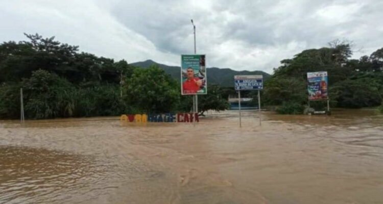 Asimismo, el desbordamiento del río Cata dejó anegada la carretera que conduce a la población de Cuyagua, donde también se vieron afectadas varias viviendas.