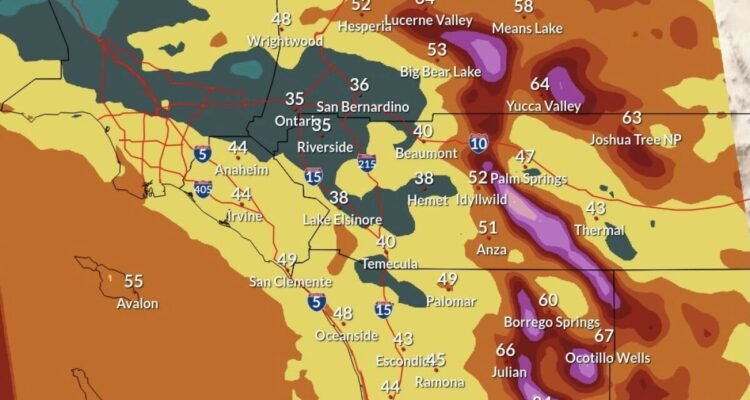 Además, se esperan 2 pulgadas de lluvia en y cerca de la costa y hasta 5 pulgadas tierra adentro. Se espera que San Diego supere pronto la cantidad de lluvia que promedia durante todo un año.