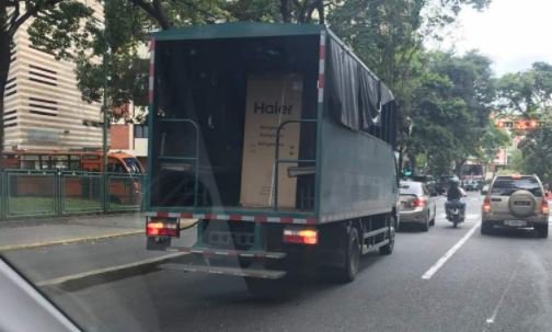 Nada más y nada menos que productos Haier, a saber, neveras, lavadoras y secadoras en los alrededores de la urbanización El Rosal de Caracas.