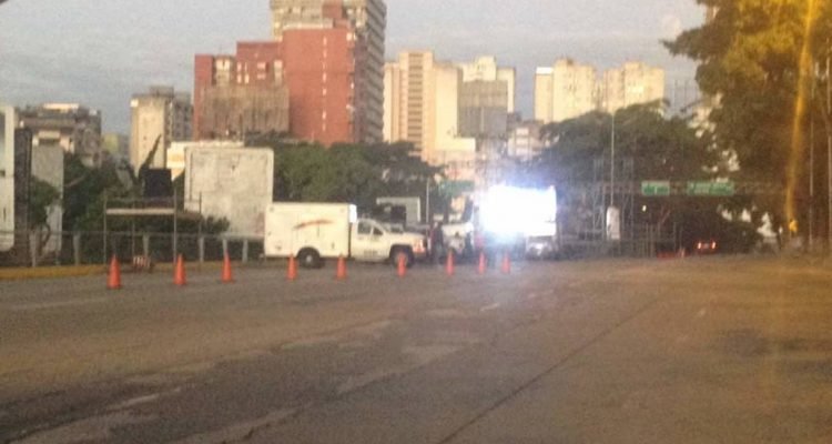 Este domingo amaneció cerrado el acceso de vehículos en la avenida Libertador a la altura de Colegio de Ingenieros y Cantv debido a que el oficialismo armó una tarima en la vía.