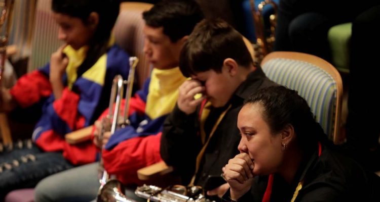Los muchachos de El Sistema lloran por su maestro Jose Antonio Abreu en Caracas, Venezuela Marzo 25, 2018. REUTERS/Marco Bello REUTERS/Marco Bello