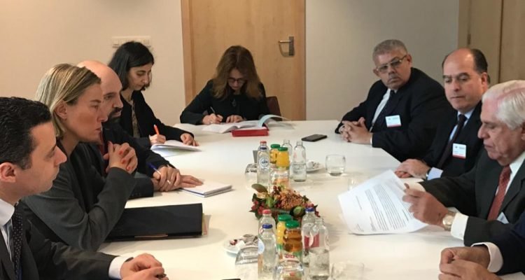 La jefa de la diplomacia de la Unión Europea Federica Mogherini, recibió en su oficina, en Bruselas, a la delegación de la oposición venezolana conformada por el presidente de la Asamblea Nacional Omar Barboza, el ex presidente del Parlamento Julio Borges, el coordinador político de Voluntad Popular Carlos Vecchio, el diputado de Acción Democrática Edgar Zambrano y el parlamentario de Un Nuevo Tiempo Elías Matta. En la que la alta funcionaria aseguró que Europa trabajará para que en Venezuela haya un “proceso electoral claro, creíble y acordado con la oposición democrática”.
