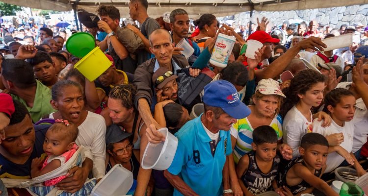 La gente espera la sopa gratis entregada por los voluntarios del candidato presidencial venezolano Javier Bertucci del partido “Esperanza por el Cambio”, durante un mitin de campaña en Caracas, Venezuela el 12 de mayo de 2018. REUTERS / Adriana Loureiro