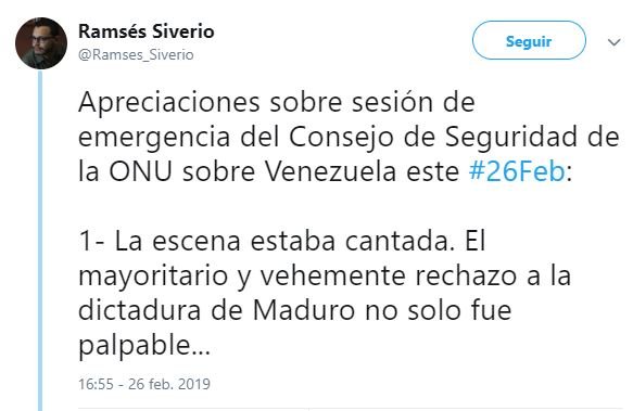 Apreciaciones sobre sesión de emergencia del Consejo de Seguridad de la ONU sobre Venezuela este #26Feb: