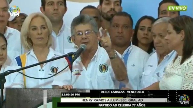 El expresidente de la Asamblea Nacional (AN), el diputado Henry Ramos Allup, calificó este jueves de “inexistente” la inhabilitación para ejercer cargos públicos aplicada por parte del régimen de Nicolás Maduro contra el presidente encargado de Venezuela, Juan Guaidó.
